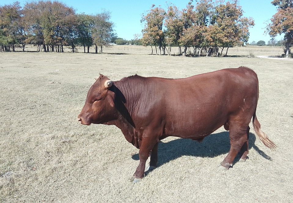 #K8A - An easy going bull from some of Beefmaster's top bloodlines, including; Synergy, Red Sugar, Sugar Britches, Bonfire, Prissy Lady, Sugar Pie, and others. Hector is a natural calf from our #K8 dam that we unfortunately lost a few months after weaning. But Hector is still with us and being utilzed for natural service. He'll eat out of your hand, is very gentle, and pretty nice to work with in the chute, and had the following performance, "without creep" *only CSM with salt limiter in the dry months !